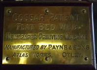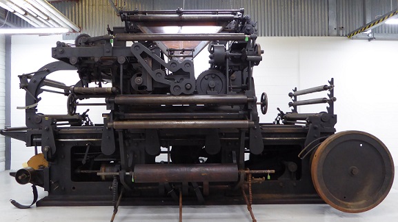 The machine was so popular because the local printer in every small town, in addition to jobbing work, would usually print a local newspaper on the equipment available, which would involve printing the first side, printing the second side, folding, trimming and collating the sections. This was a laborious way to produce a newspaper, but the efficiencies of the large rotary presses used for the production of national and regional daily papers were out of reach of the small proprietor: not only were the presses costly, they required the production of curved stereotype plates, which led to further costs. Cossar’s invention – a development of the industry standard stop-cylinder ‘Wharfedale’ flatbed press – revolutionised the production of local, and other small circulation papers.